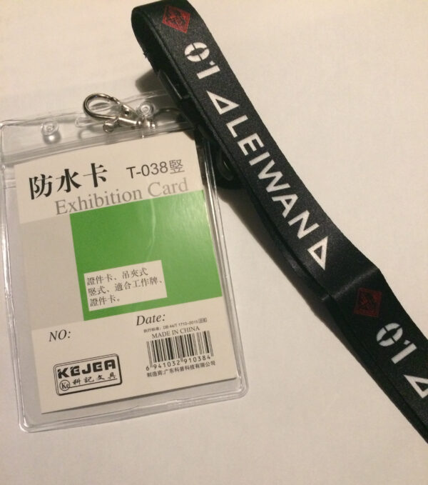 Leiwan Cheki holder with a strap. Strap is black. ON the strap is the signature “LEIWAN”.