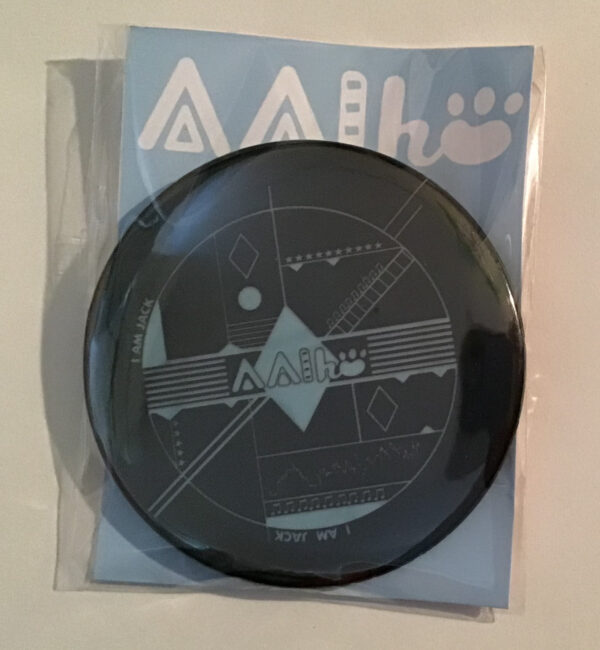 This is based off the t-shirt design for the release of Miho’s song, DOUBT. Black button, semi-medium size, comes in special collector’s edition packaging.