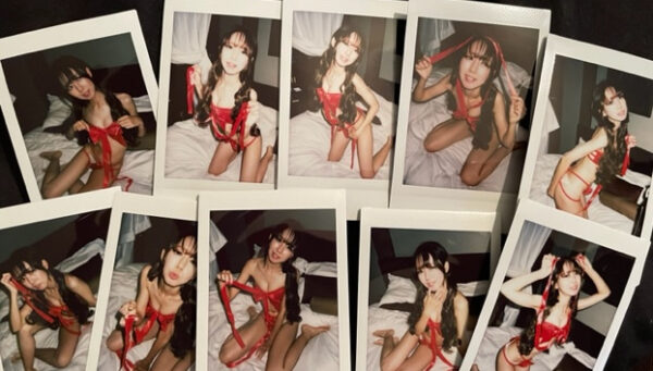 The release of this cheki is part of a series of monthly gravure cheki release sets by Miho. The RED RIBBON FANTASY CHEKI SHOWS MIHO ALL WRAPPED UP IN A TWO PIECE SET HELD TOGETHER BY RIBBONS. TOTALLY BEAUTIFUL!