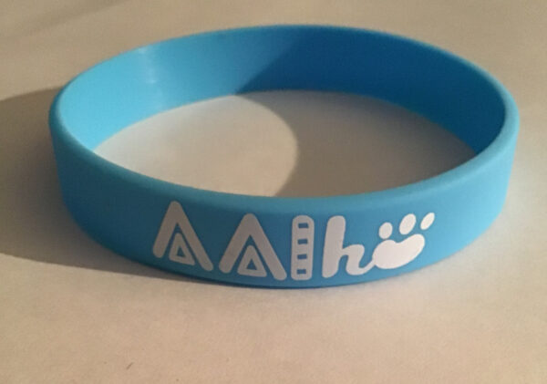 You will receive 1 thin Miho Sky Blue Wristband – Logo Version