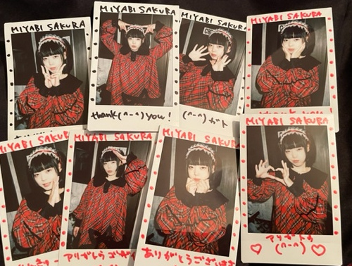 Miyabi wearing her new costume. Each cheki is signed