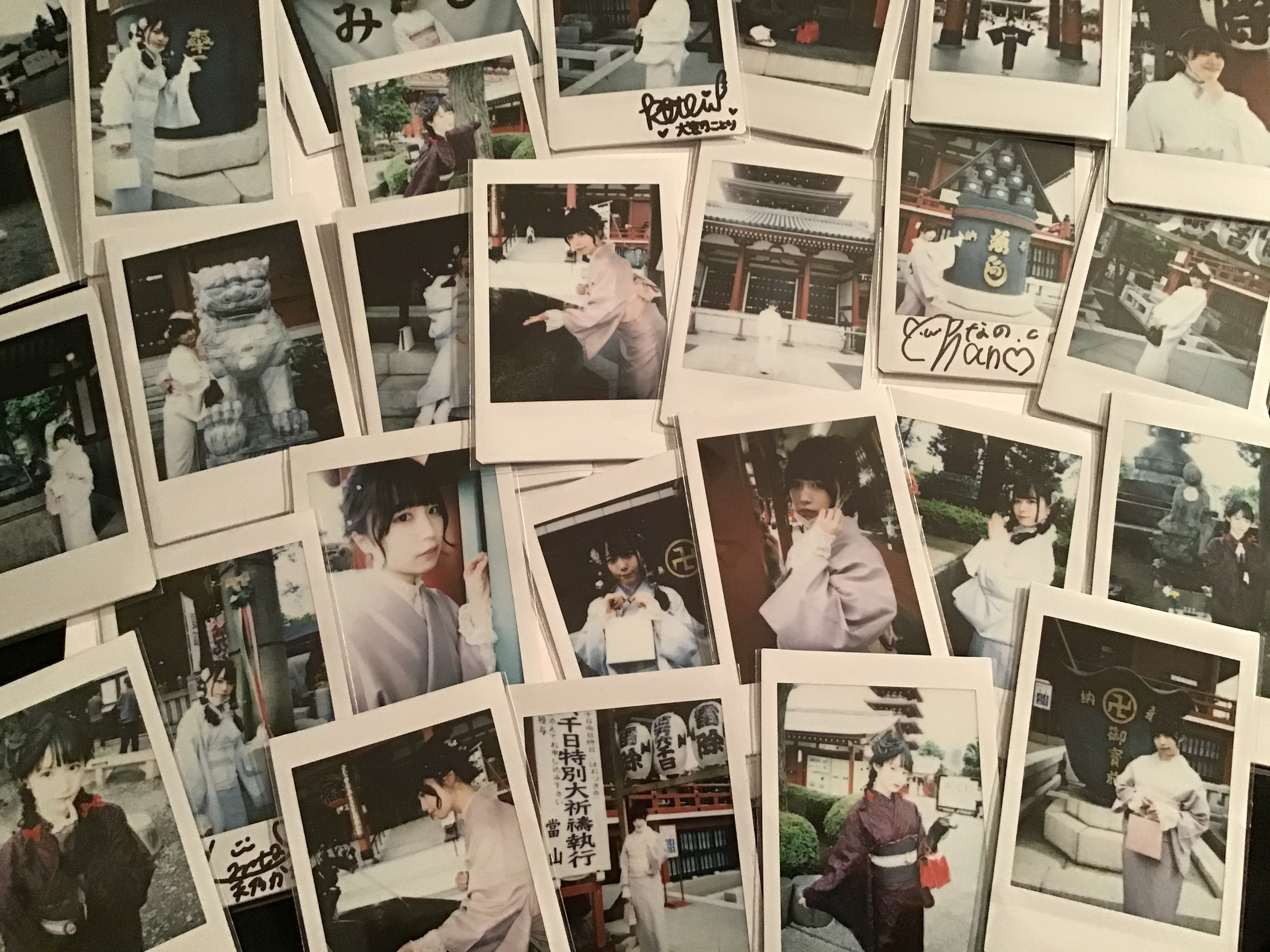 One random cheki (business card sized instant photo) of one of the members of PENTAPRISM. They are all dressed in traditional Yukata. The cheki were taken at Sensō-ji Kannon Temple in Asakusa. Some cheki are even signed! Purchase as many as you want! You can get cheki that might be signed even!