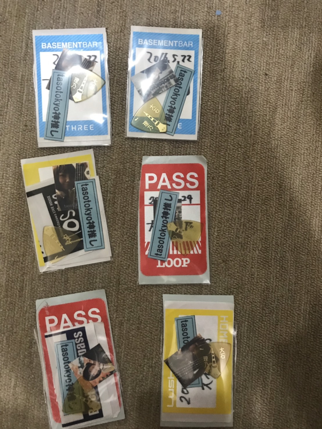 Rino Oishi has put together a collection of all access passes from her previous concerts, as well as guitar pics she has used.