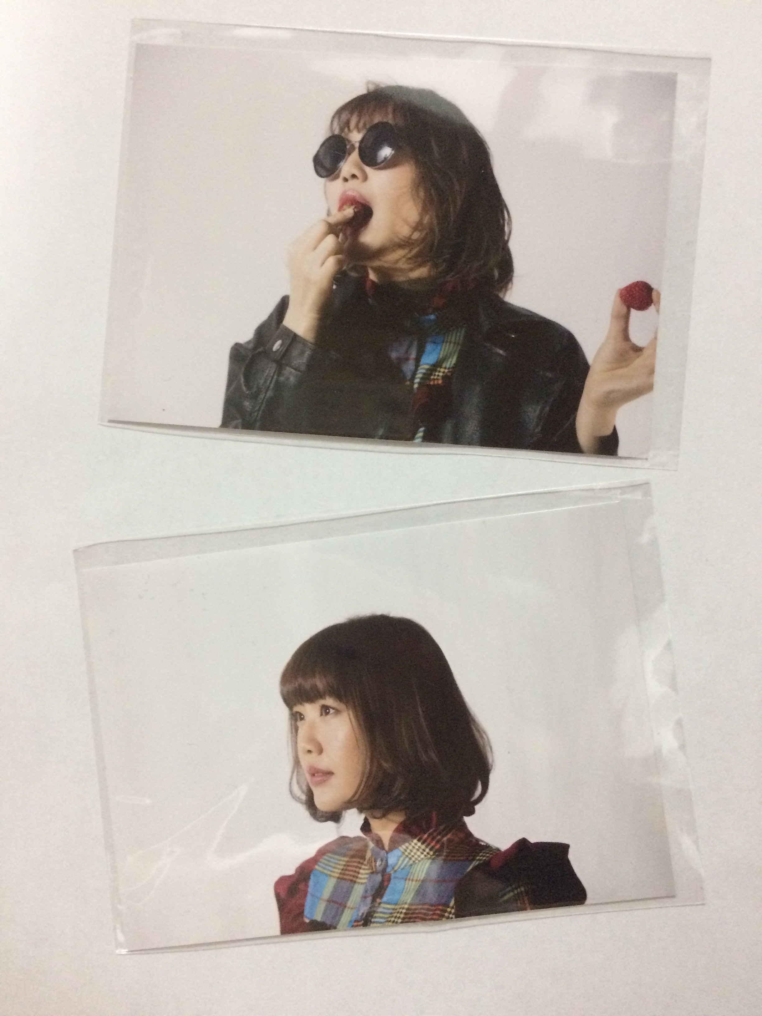 2 photos, each in a protective sleeve, medium size