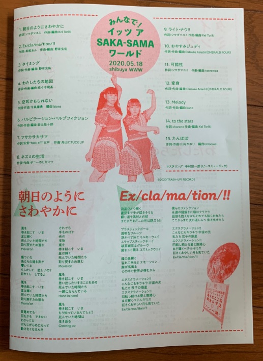 This is a gorgeous Live CD and Photobook to commemorate Saka-Sama’s one man live on 5/18/20 at Shibuya WWW. This was a one-man live held without an audience, due to the influence of the Corona virus. The photobook consists of photos taken on this special and amazing occasion for the now legendary Saka-Sama.